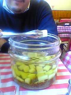 nach dem essen kam der wirt mit diesem glas an....zuckerwuerfel, die in einer